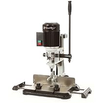 The WoodRiver Bench Mortiser comes standard with Best In Class options such as a powerful half HP motor a six-position reversible handle rack and pinion fence two roller bearing work supports and pull-out table extensions that provide 35 of work surface. For unsurpassed accuracy the head travels on adjustable rack and pinion dovetail ways. Includes: Bench Mortiser 1/4" 5/16" 3/8" and 1/2" mortising bits and chisels tool and chisel holder and user manual with parts breakdown. One-Year Warranty Specs: